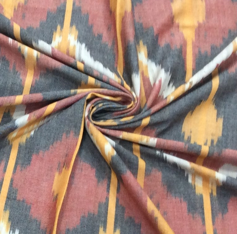 Multicolor Handloom Thick Cotton Ikat (Width: 44 inches or 112 cm)