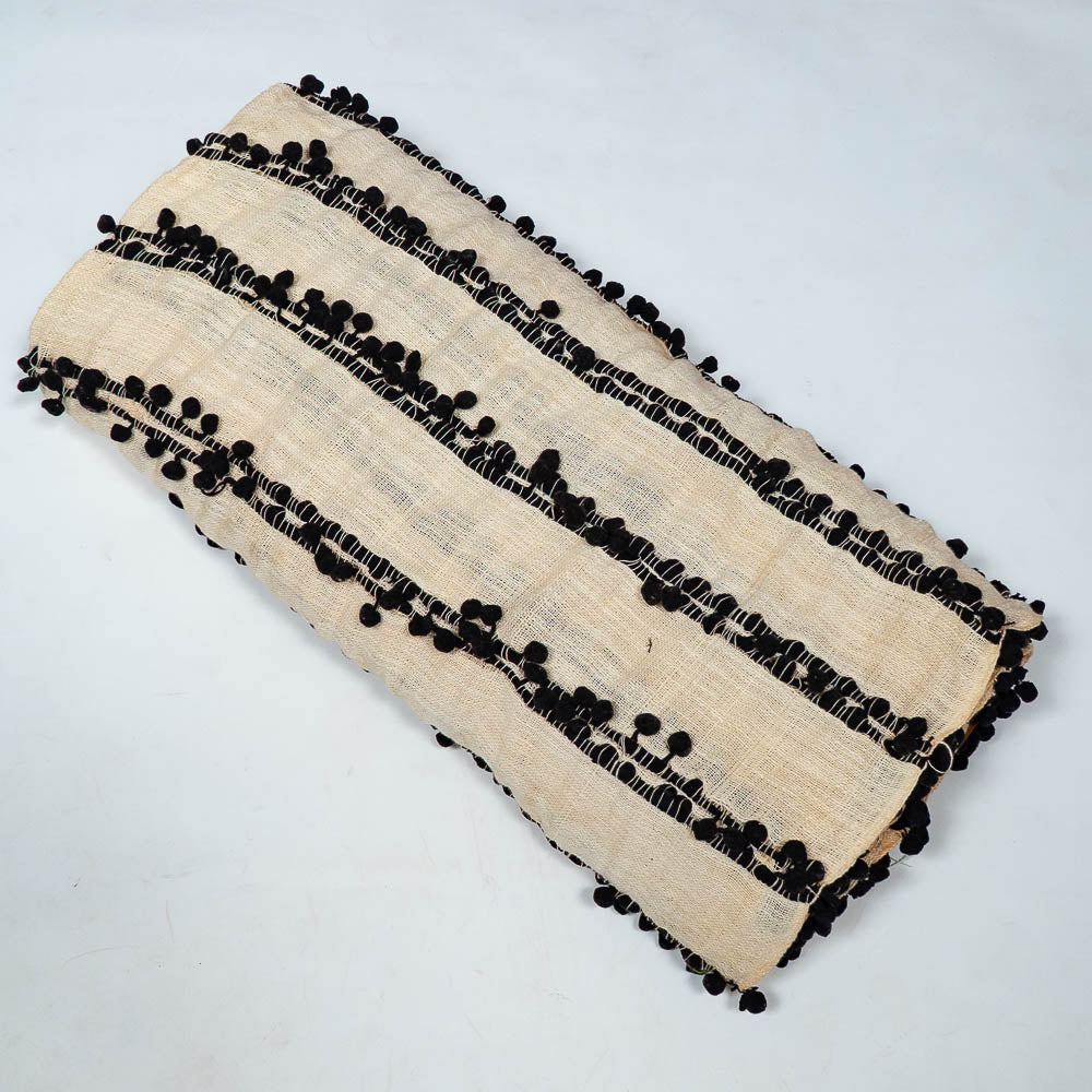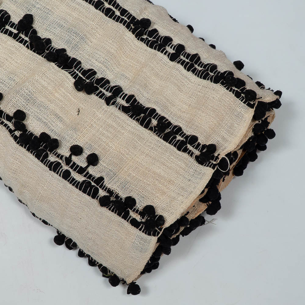Natural Cotton With Acrylic Pompom Textured Jacquard (SKU: J-558)