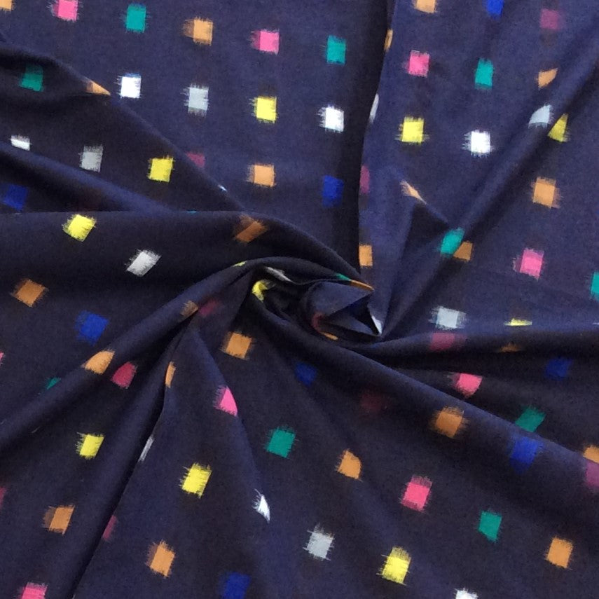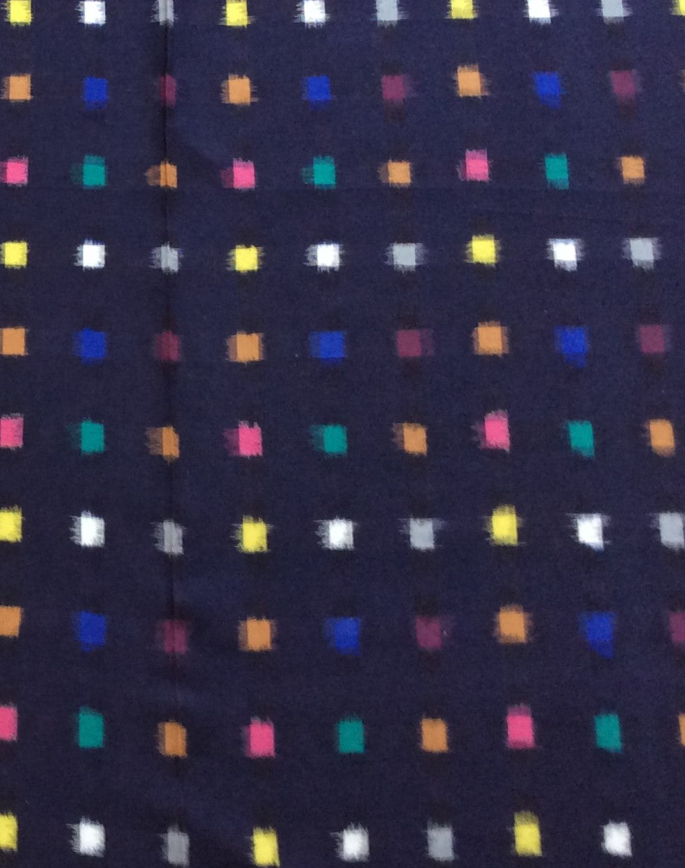 Blue Base Multicolor Square Cotton Handwoven Thick Double Ikat (Width: 44 inches or 112 cm)