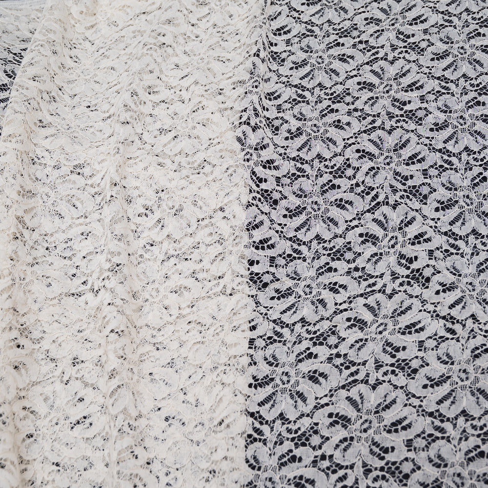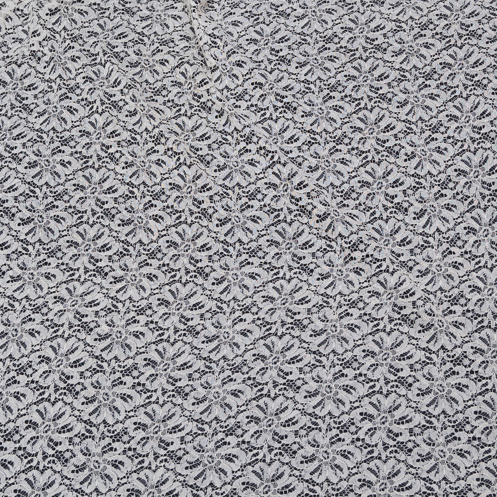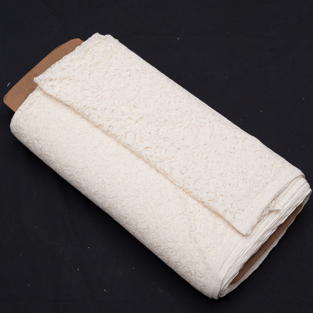 Off White Floral Design Dyeable Cotton Net (SKU: N-95)