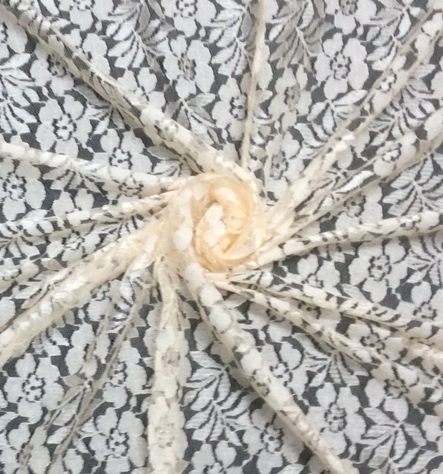 Off White Floral Design Dyeable Cotton Nylon Net Fabric