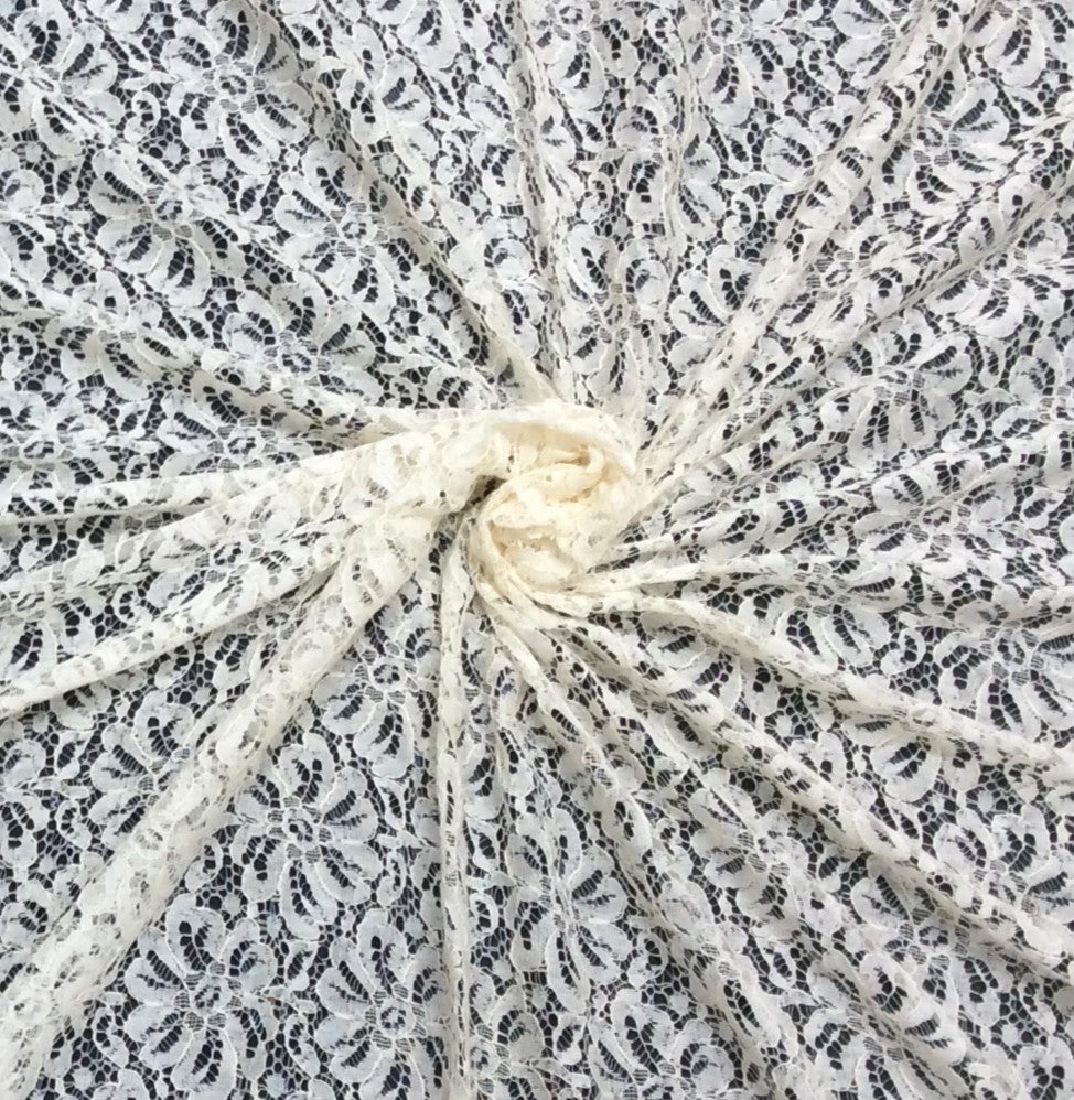 Off White Floral Dyeable Cotton Nylon Net Fabric