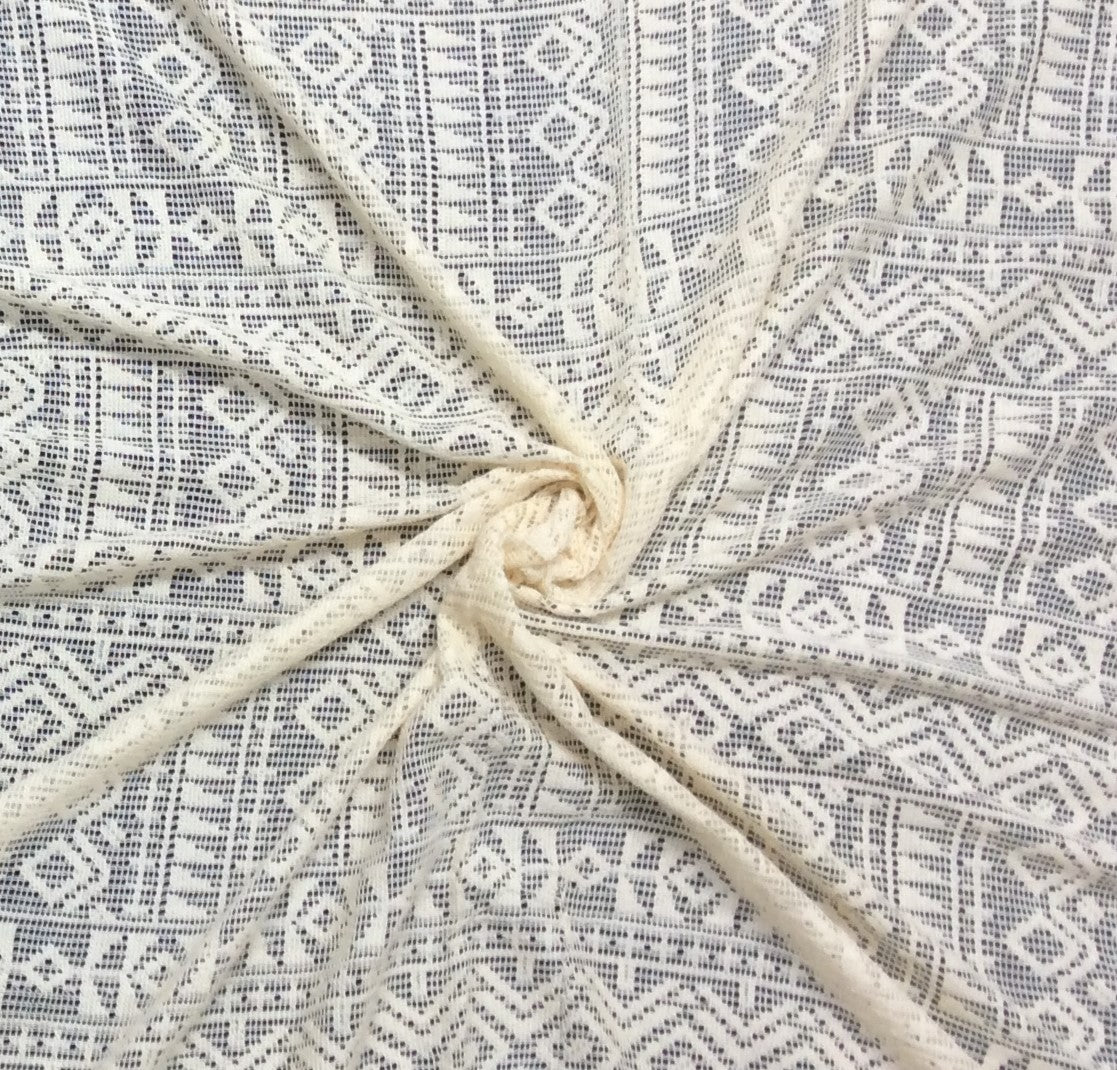 Off White Geometric Design Cotton Dyeable Net Fabric