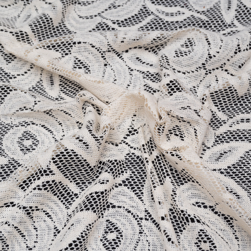 Off White Rose Design Dyeable Cotton Net (SKU: N-119)