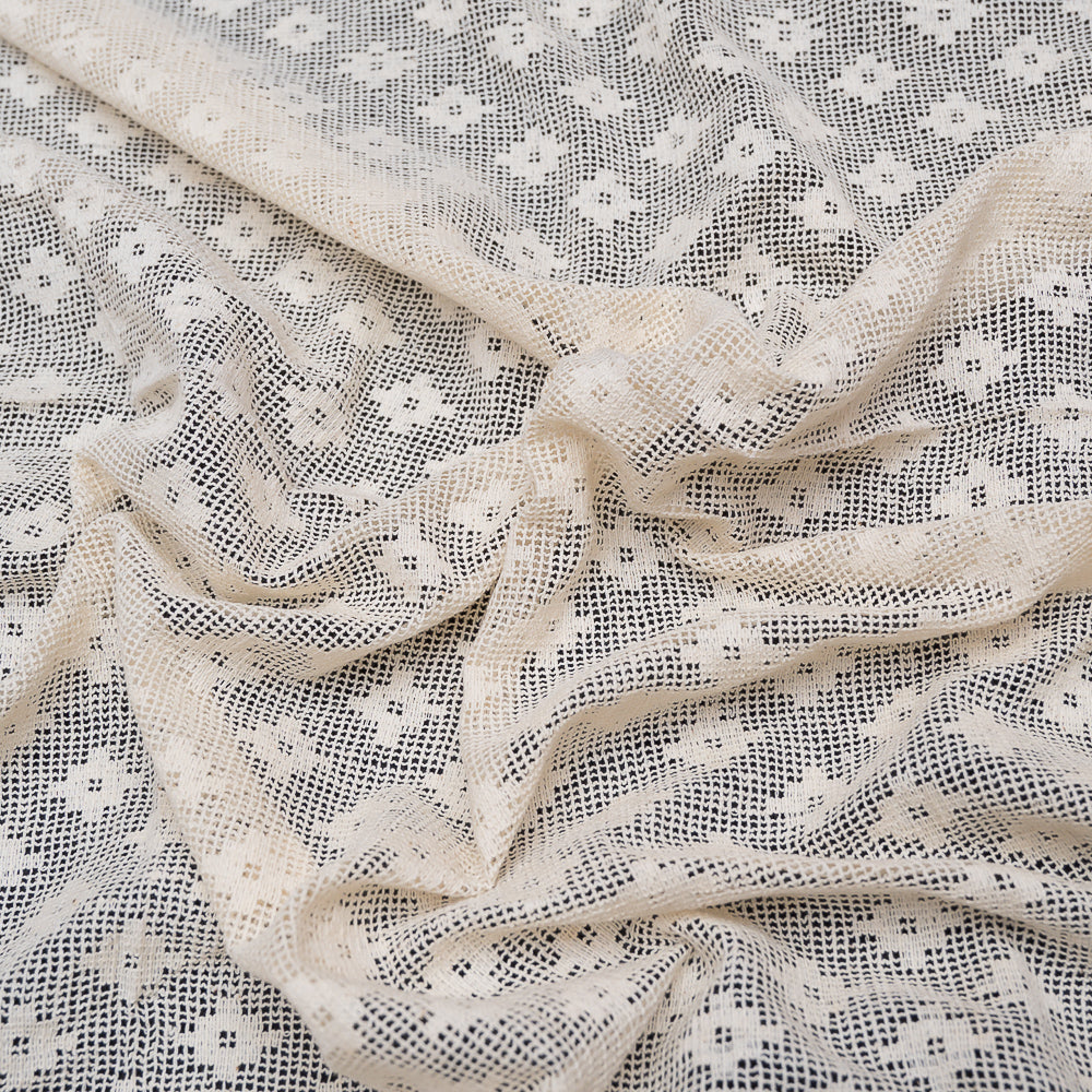 Off White Small Floral Design Dyeable Cotton Net (SKU: N-98)