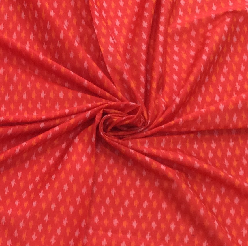 Red & Yellow Silk (50%) Cotton (50%) Blend Handwoven Ikat (Width: 44 inches or 112 cm)