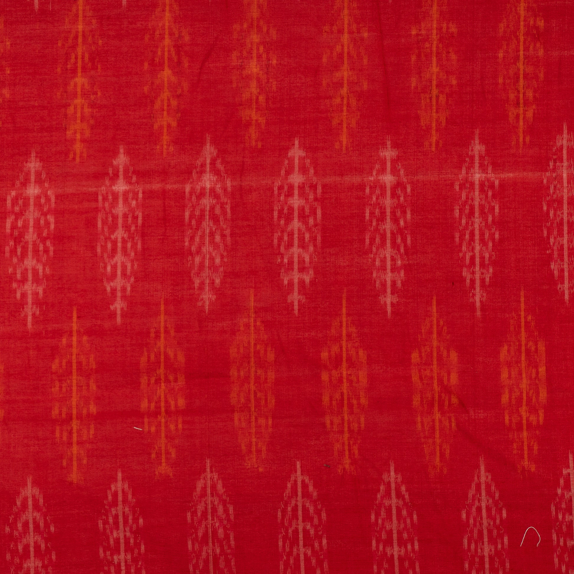 Red Cotton Silk Blend Fine Quality Handloom Ikat (Sku: IK-176)