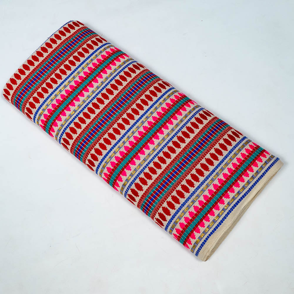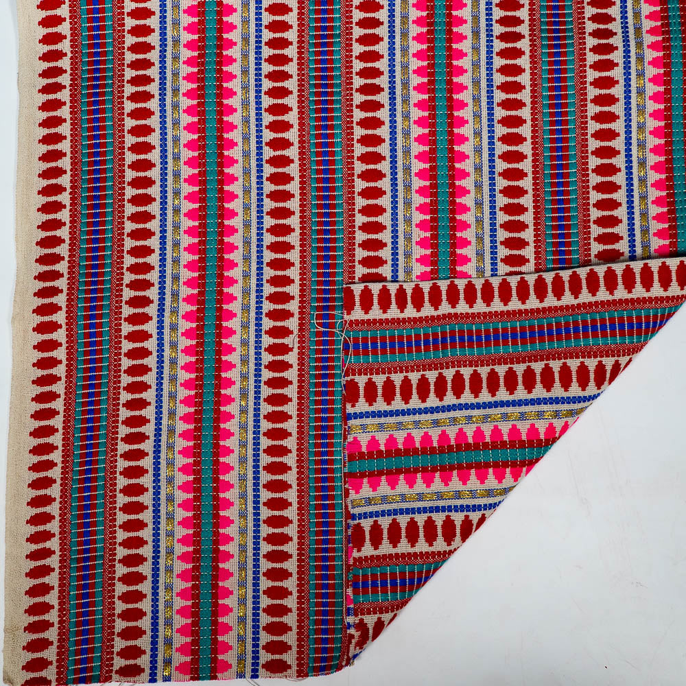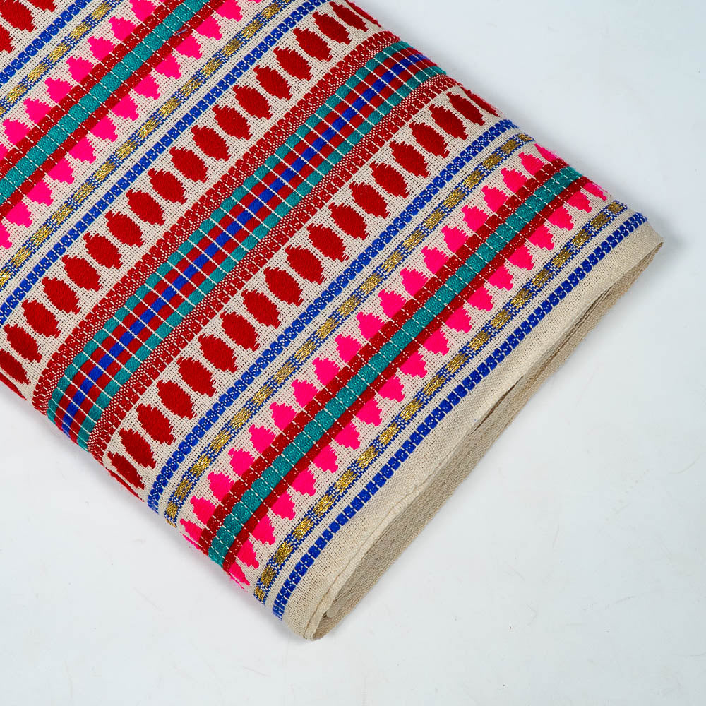 Red & Multicolor Capsule Design Cotton Acrylic Jacquard (SKU: J-554)