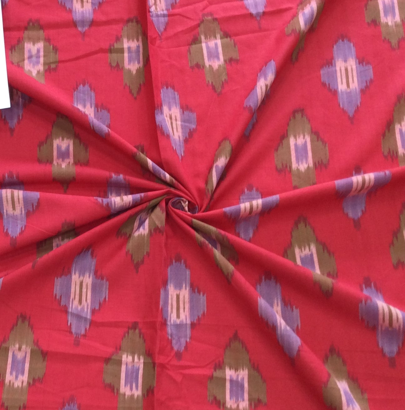 Red, Multicolor Design Fine Cotton Ikat Fabric (SKU: IK-125)