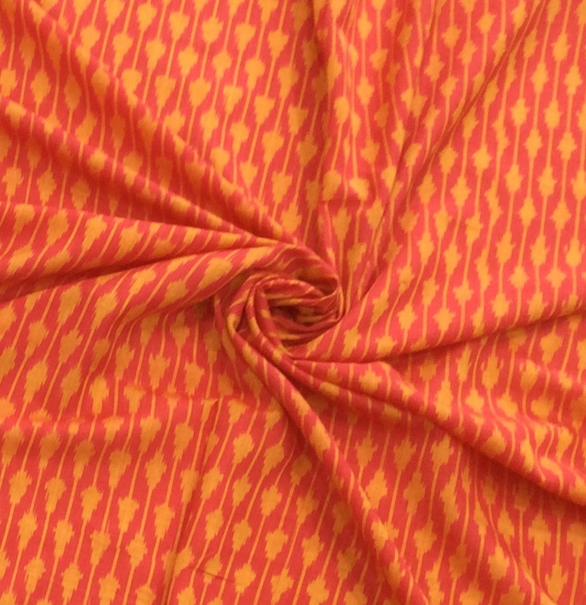 Red, Yellow Handloom Cotton Voile Ikat (Width: 44 inches or 112 cm)