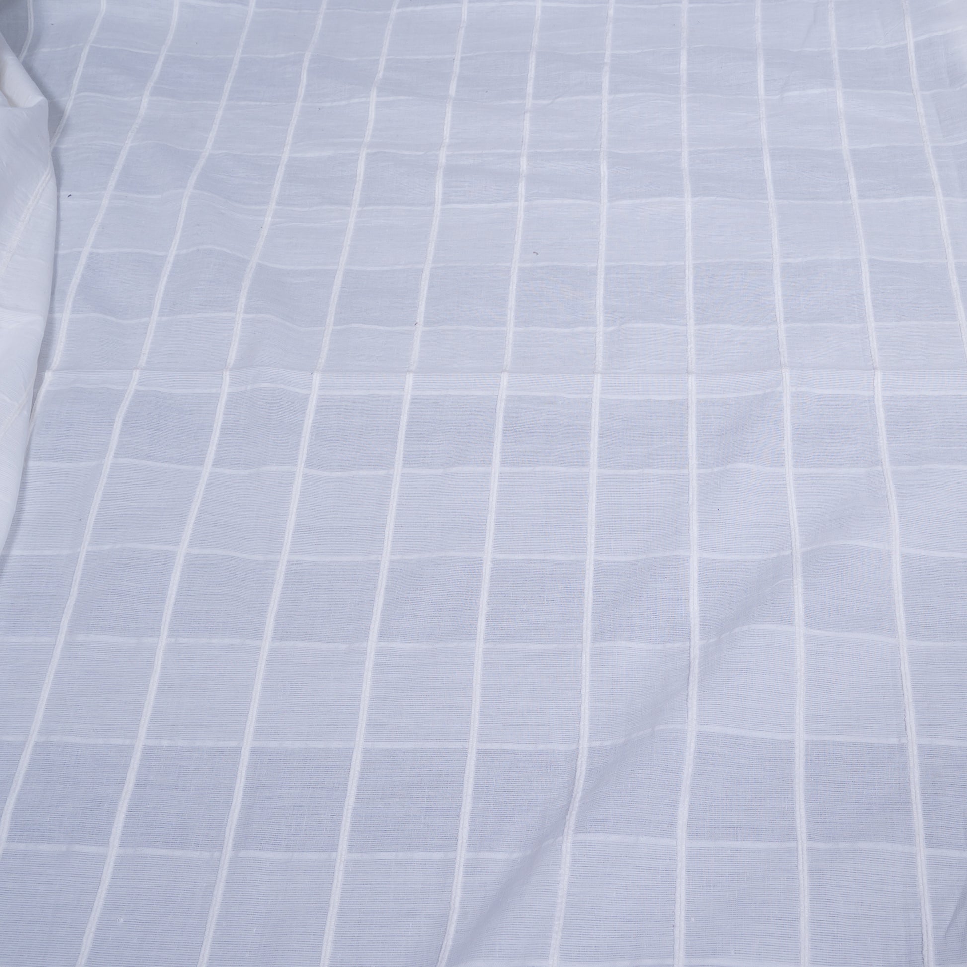 White Self Leeno Cotton Check Dyeable Fabric