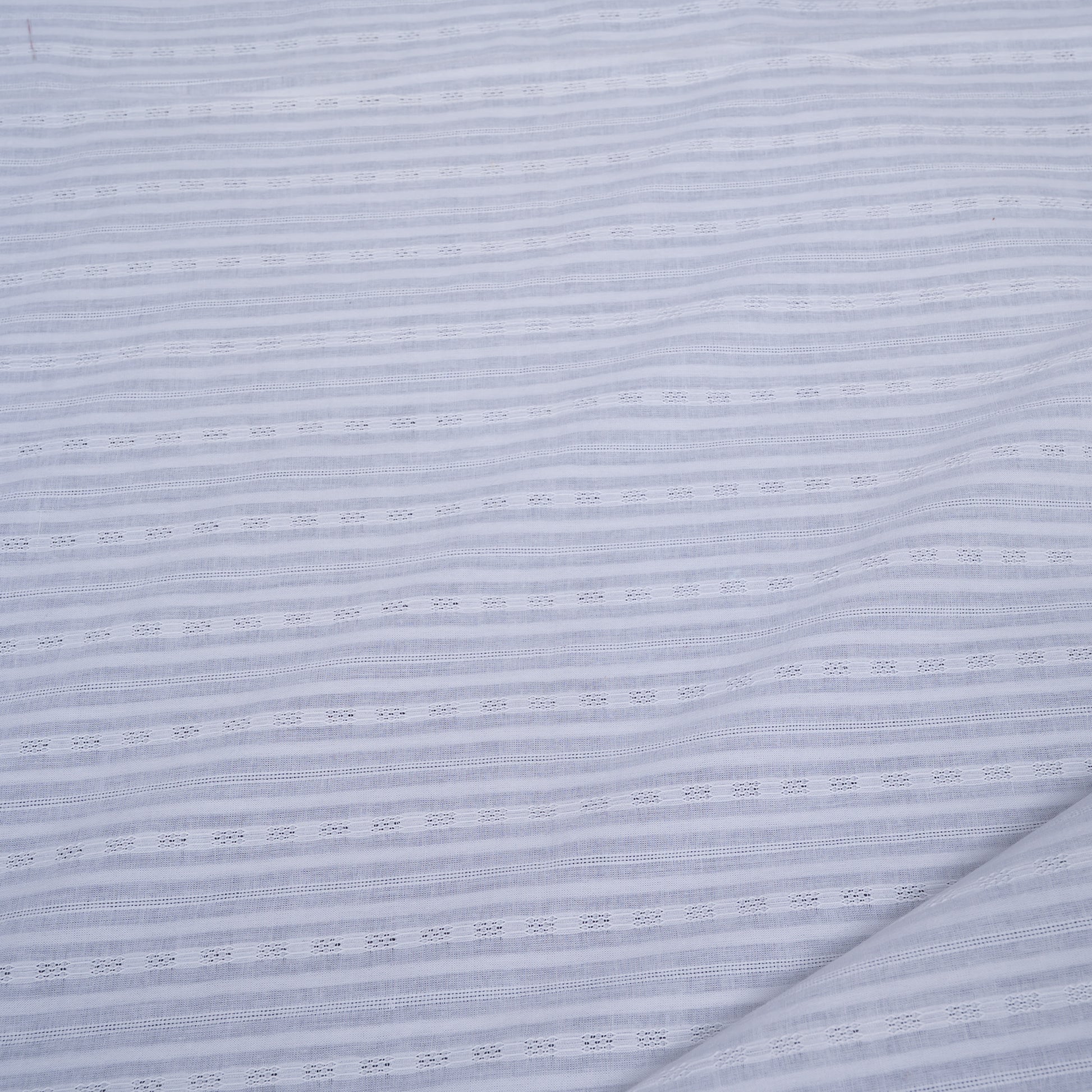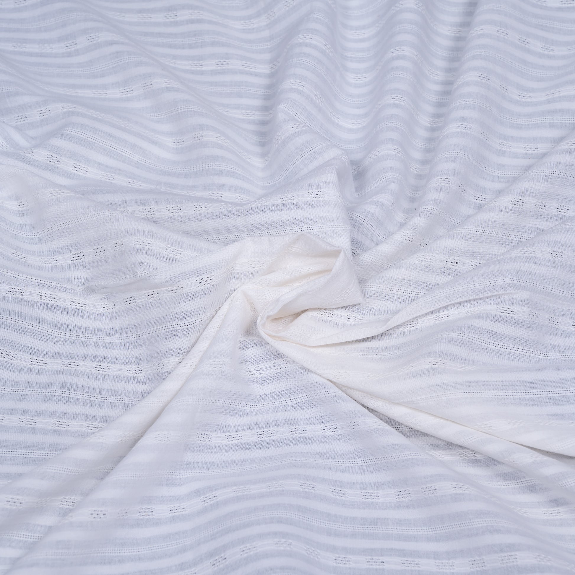 White Self Leeno Cotton Stripe Dyeable Fabric