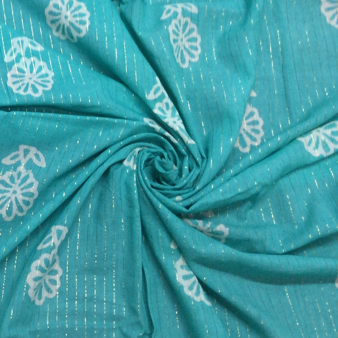 Sku Blue color Cotton Lurex Block Print Fabric (SKU: B-127)