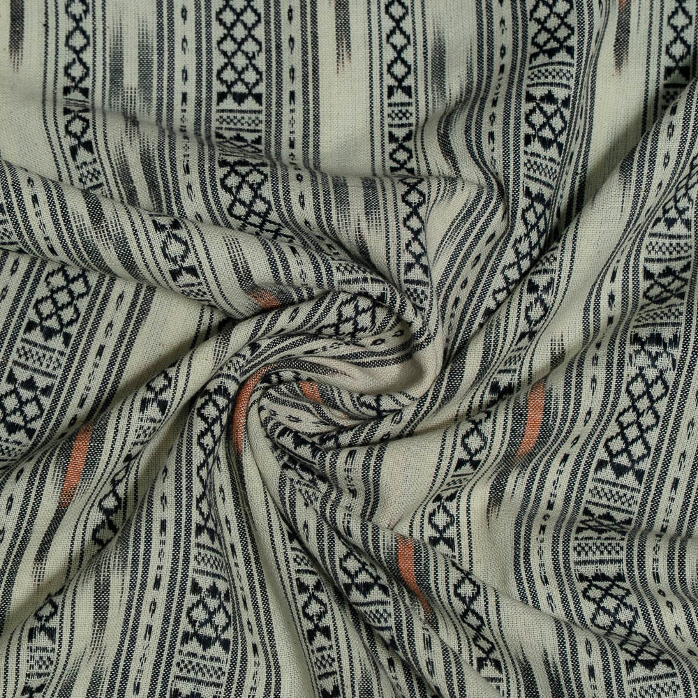 White & Black Dobby Cotton Handloom Ikat (SKU: IKK-449)