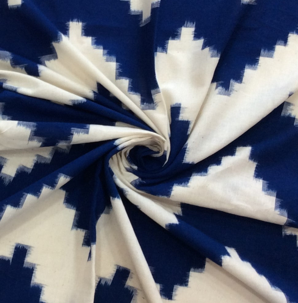 White, Blue Chevron Cotton Handloom Double Ikat (SKU: IKK-622)