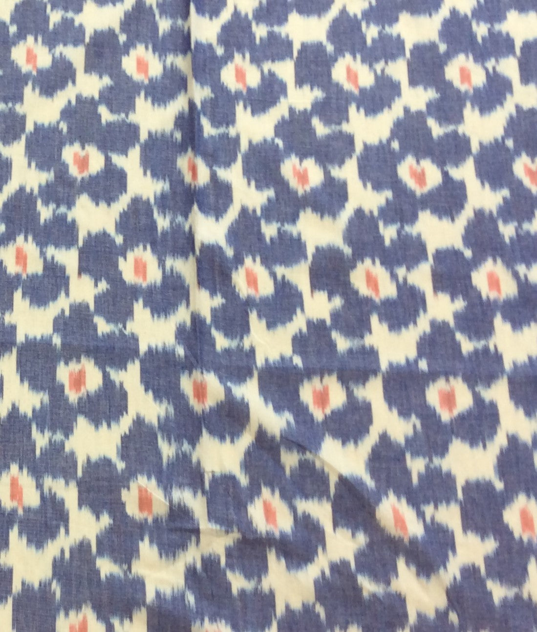 Blue & White Floral Fine Quality Cotton Handloom Ikat (Width: 44 inches or 112 cm)