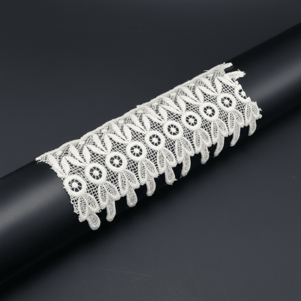 GPO lace is widely used as a lace trim and border in apparel manufacturing and can be easily customized as per garment requirements. Its durability and smooth finish make it suitable for long-term use in clothing and decorative textile applications.