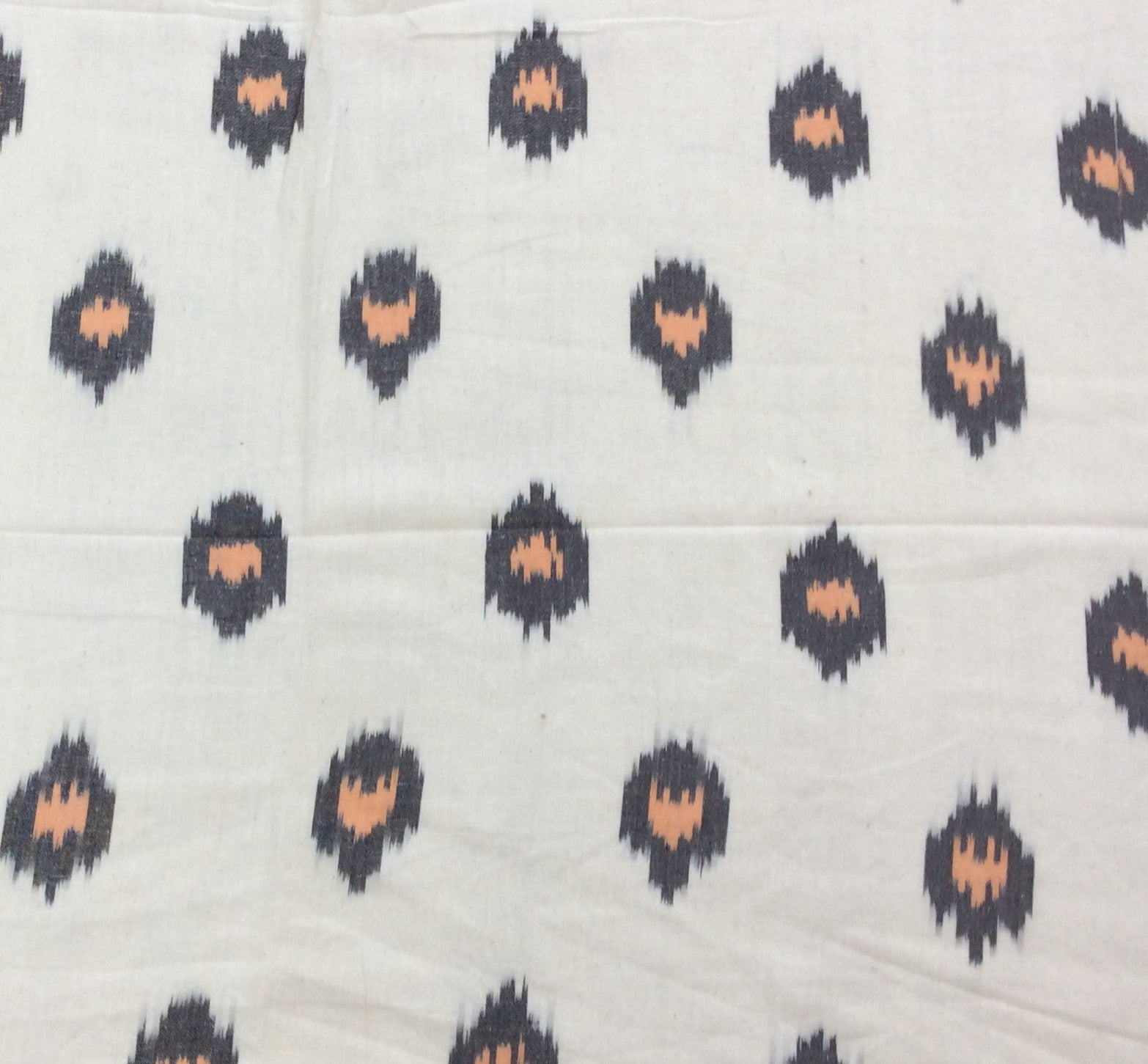 White, Black & Yellow Fine Quality Cotton Handloom Ikat (Sku: IK-226)