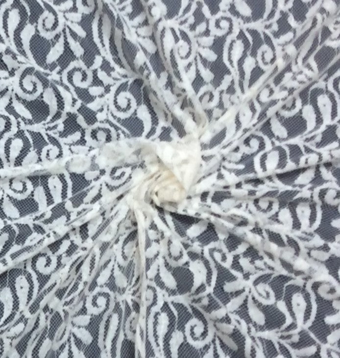 White Floral Design Dyeable Cotton Nylon Net Fabric