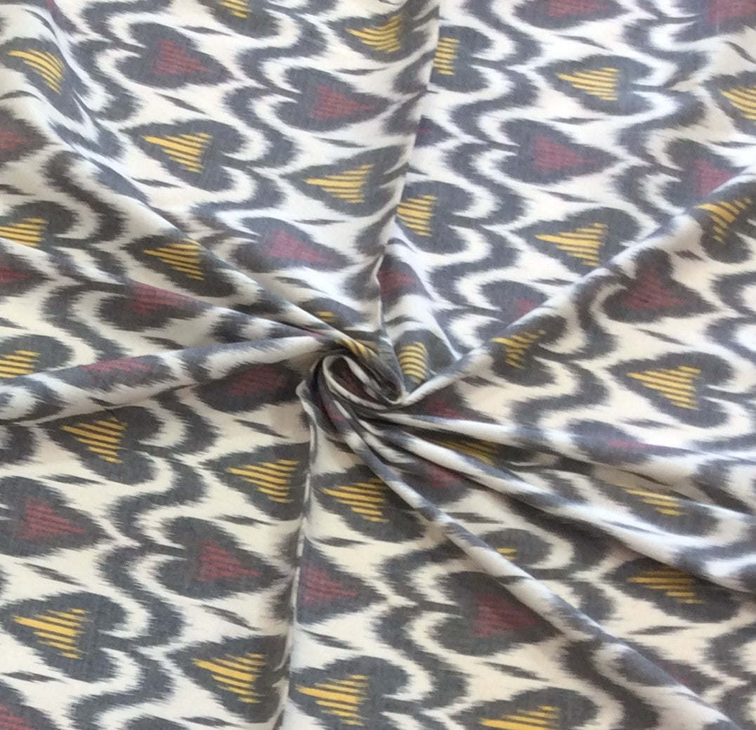 Red, Yellow & Grey Fine Quality Cotton Woven Handloom Ikat (Width: 44 inches or 112 cm)