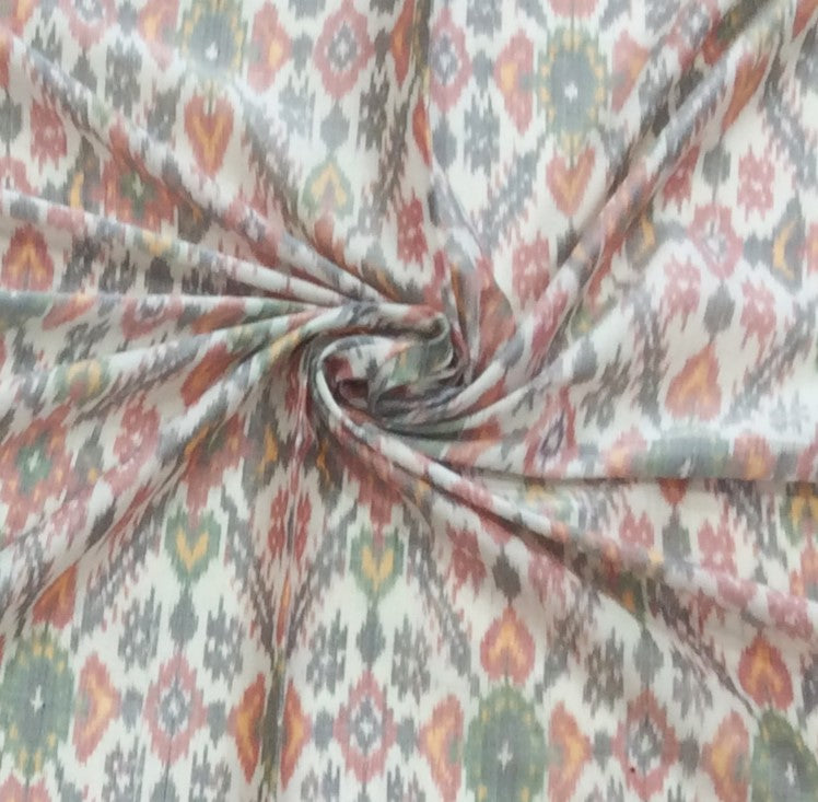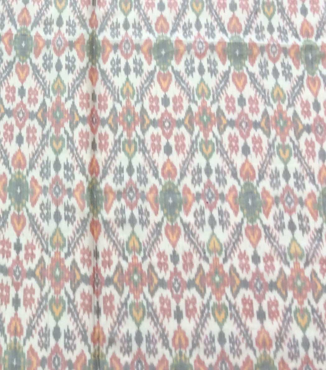 White Base Multicolor Silk (50%) Cotton (50%) Blend Handwoven Ikat (Width: 44 inches or 112 cm)