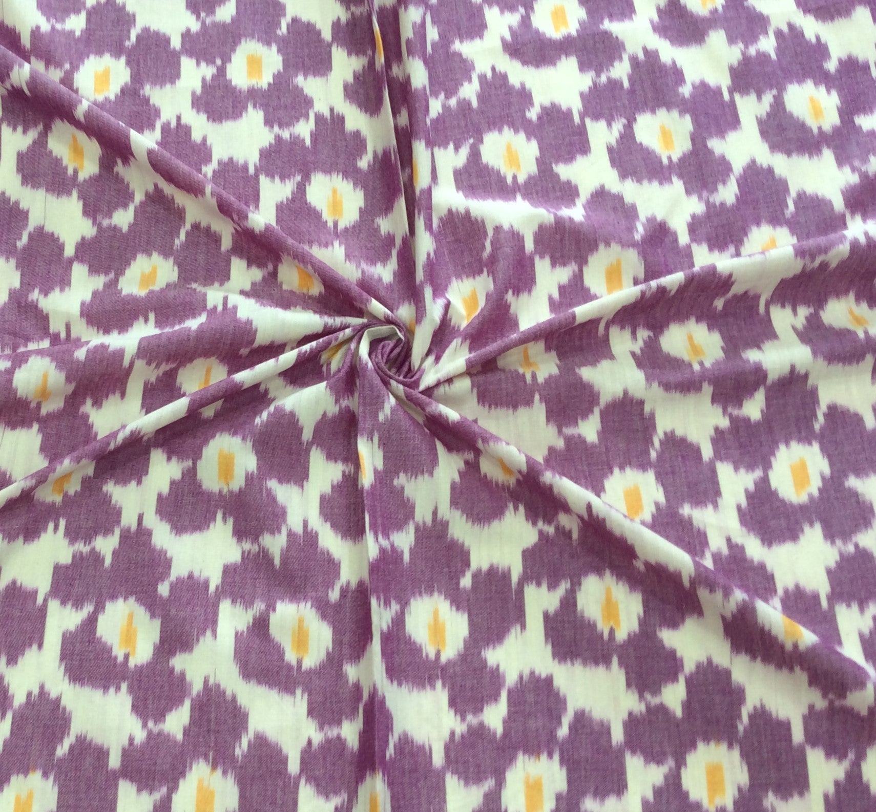 White, Purple Floral Design Cotton Handloom Ikat (SKU: IK-450)