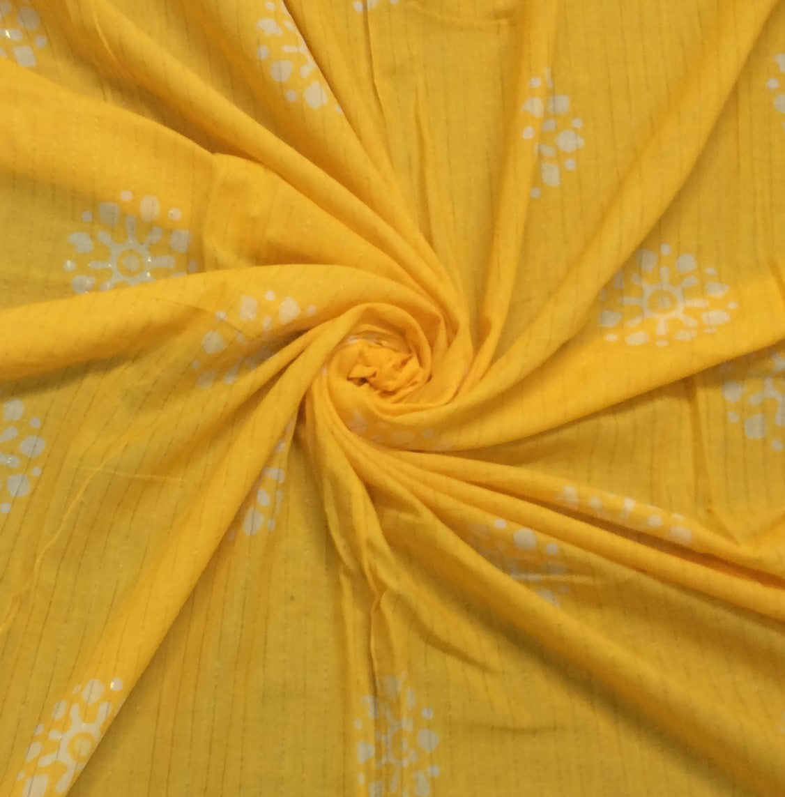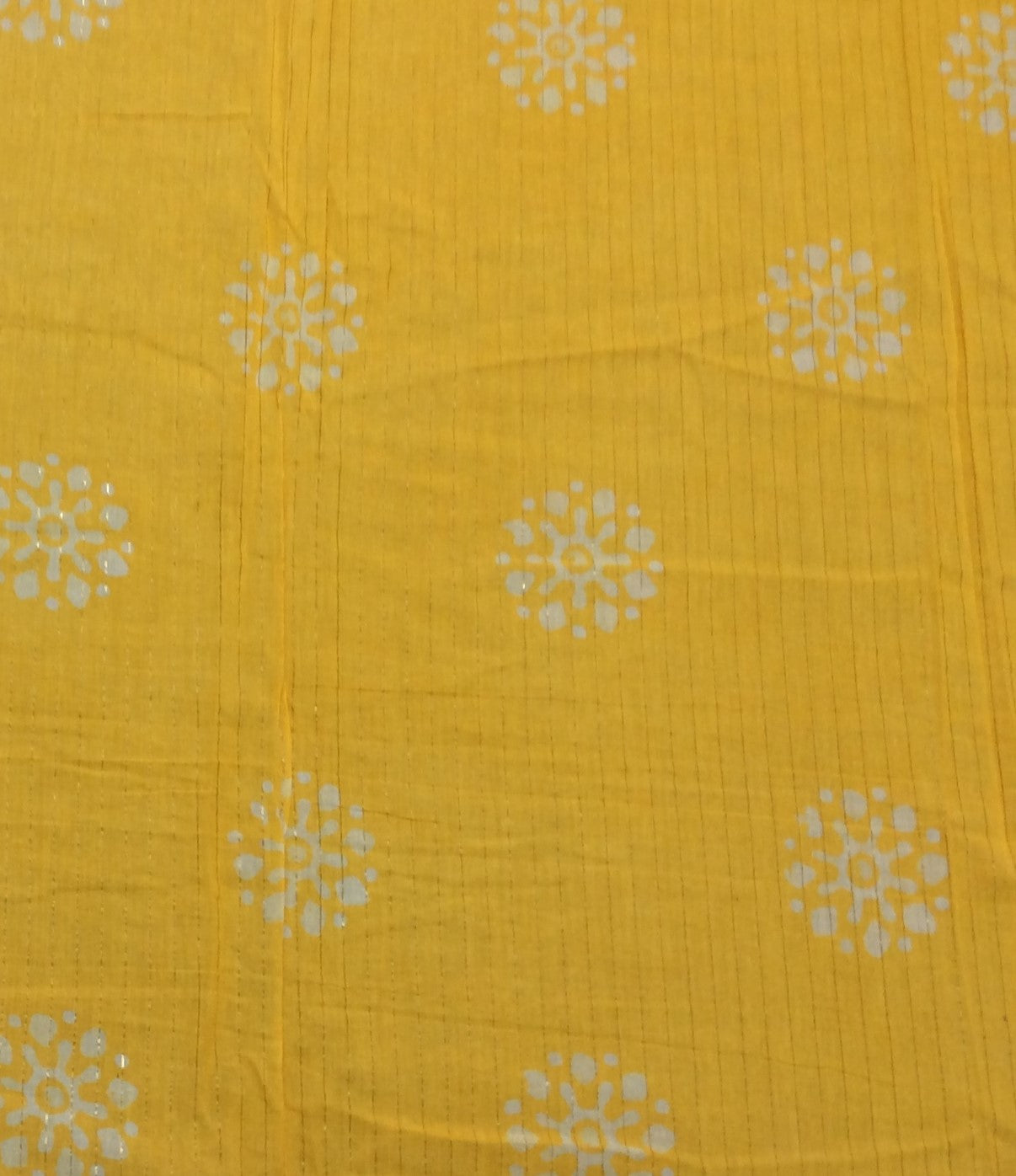Yellow color Cotton Lurex Block Print Fabric (SKU: B-128)