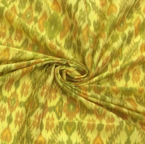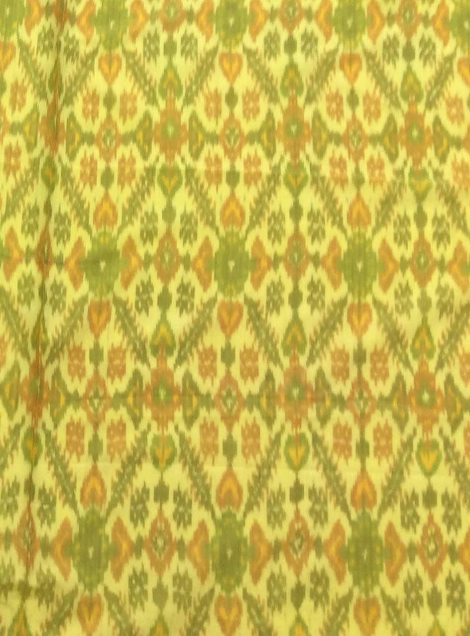 Yellow Base Multicolor Silk (50%) Cotton (50%) Blend Handwoven Ikat (Width: 44 inches or 112 cm)